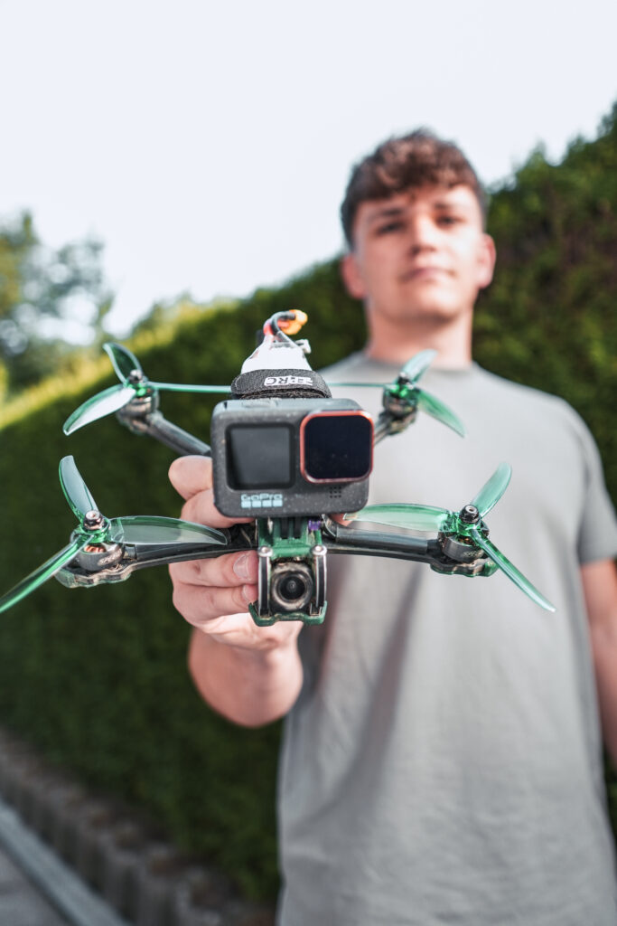 Ein 5-Zoll-Copter kann Geschwindigkeiten bis 200 km/h erreichen und dynamische Aufnahmen machen, auch von schnellen Objekten. Seine kompakte Bauweise ermöglicht einzigartige Perspektiven, ideal für Sport- und Actionaufnahmen.